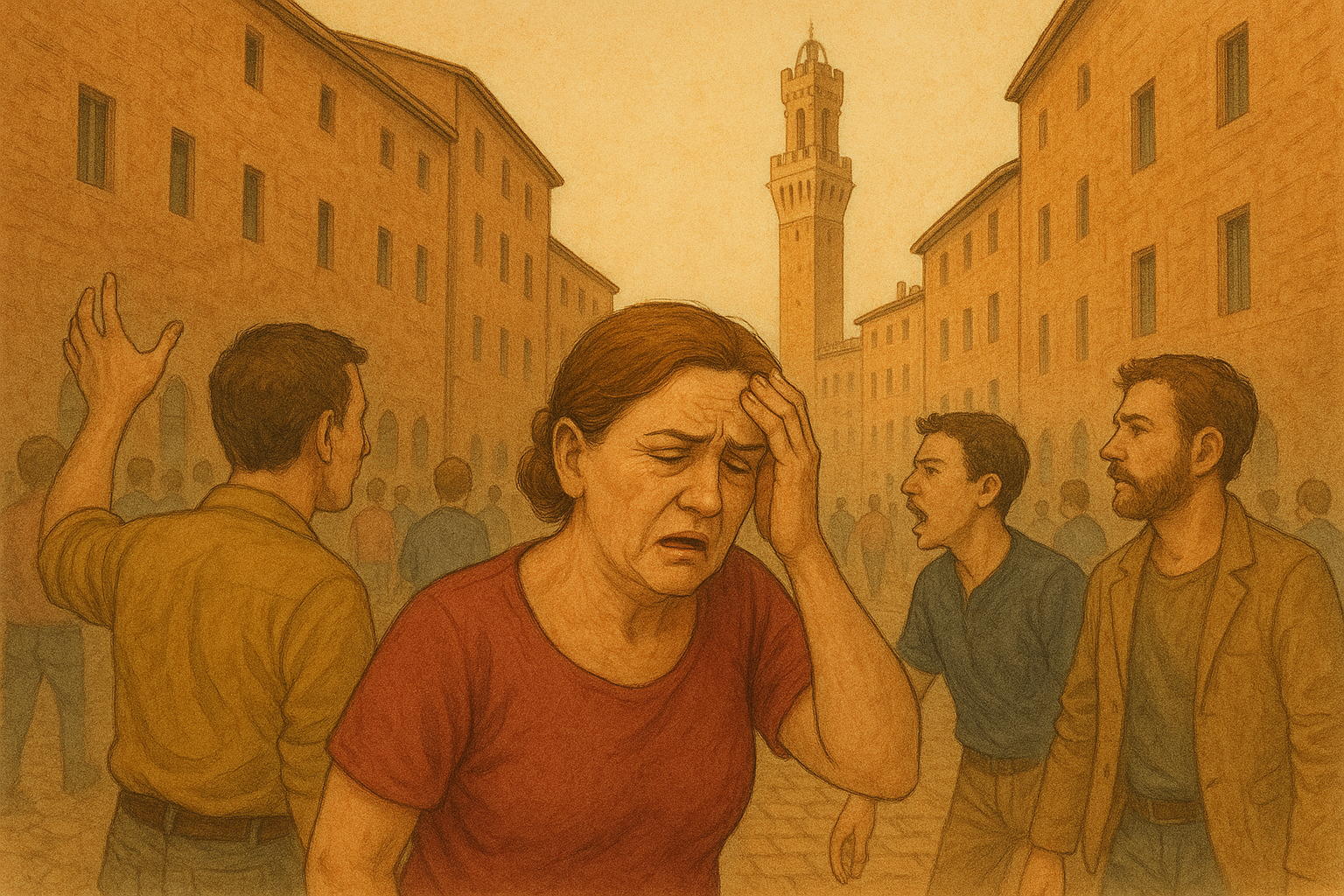 Occhio, ci pestano, Miseria maiala: oh! Questo voleva passare a tutti i costi! M’ha dato un pintone. Ma Cosa dov’è? Ah sì, la vedo. Ma non poteva stare più vicina, che così s’era tutte insieme e non ci si perdeva?…