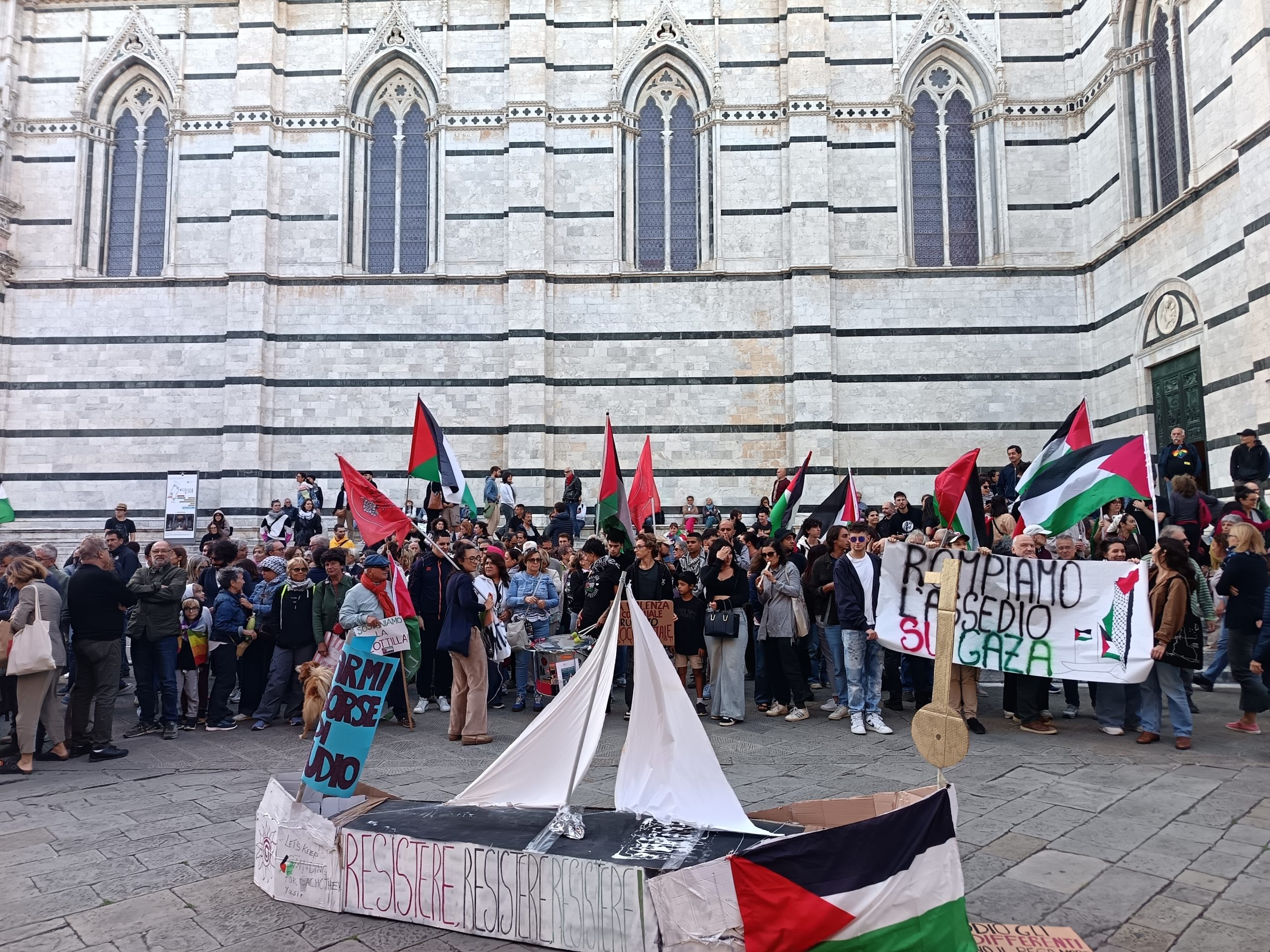 “Resistere, resistere, resistere”: in quattrocento alla mobilitazione per la Global Sumud Flotilla