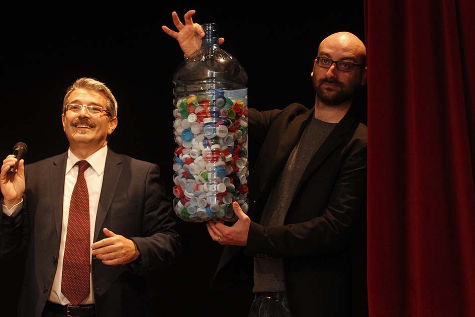 Un rifiuto può generare valore: questo il messaggio chiave dell’iniziativa. E così un assegno da 86.338 tappi da spendere in attività teatrali è stato staccato per la classe prima classificata nell’edizione 2016-17 della gara di raccolta e avvio al riciclo di tappi in plastica e acciaio. Una competizione che ha coinvolto 127 classi di una ventina di istituti scolastici di tutta la provincia di Siena: per loro in palio visite guidate, laboratori tematici, letture e animazioni teatrali, repliche di spettacoli al Teatro dei Rozzi di Siena. E già nelle settimane precedenti la premiazione, le operatrici Straligut (Alice Bellini, Carmen Sessa, Anna Amato) sono passate in tutte le classi coinvolte per consegnare agli studenti gli Attes-Tappi: simboliche lauree ad honorem in ecologia e sostenibilità ambientale.