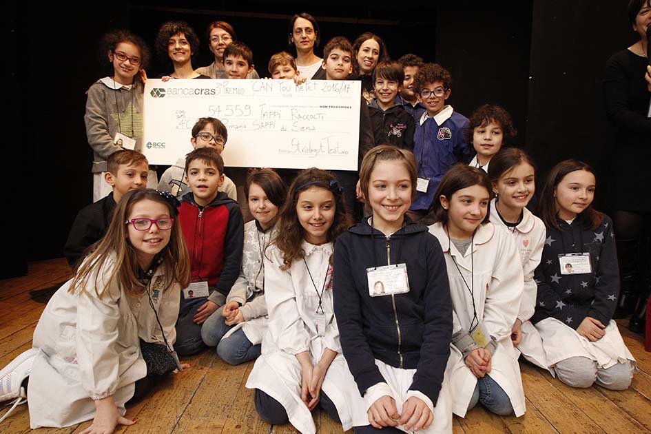 Sono infatti i bambini delle scuole primarie e secondarie di Siena e cintura i protagonisti del progetto: una gara di raccolta di tappi di plastica e acciaio partita dall’idea che anche un rifiuto può generare valore. Prima classificata la IIB della scuola media Tozzi di Chianciano Terme che Banca Cras, sostenitrice del progetto data la sua attenzione a educazione e formazione, ha ricompensato con una gita all’impianto di compostaggio di Abbadia San Salvatore e una visita al parco faunistico del Monte Amiata.