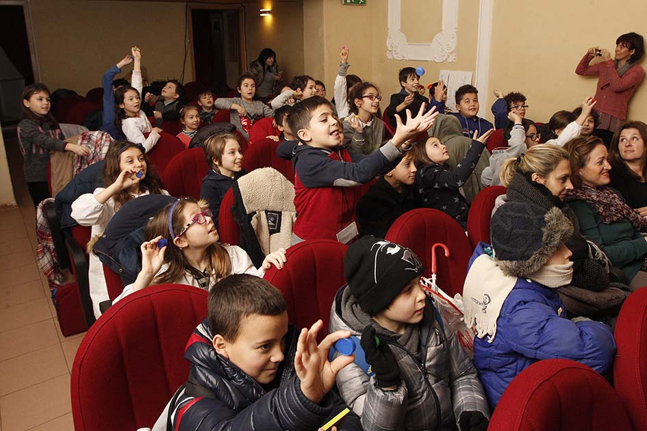 Al termine della mattinata, i partecipanti lasciano il teatro con un tappo colorato tra le mani in ricordo di una manifestazione resa gioiosa soprattutto dalla “cerimonia del tocco”: lancio in aria di tappi e mille piccole mani di bambini festanti rivolte in alto.