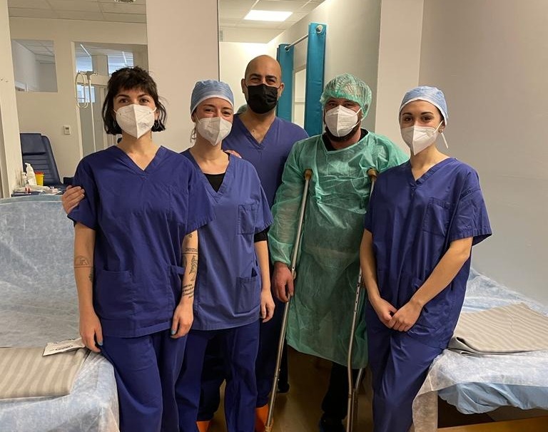 Muznir, il padre del piccolo Mustafa, operato alla gamba nelle sale della Performance