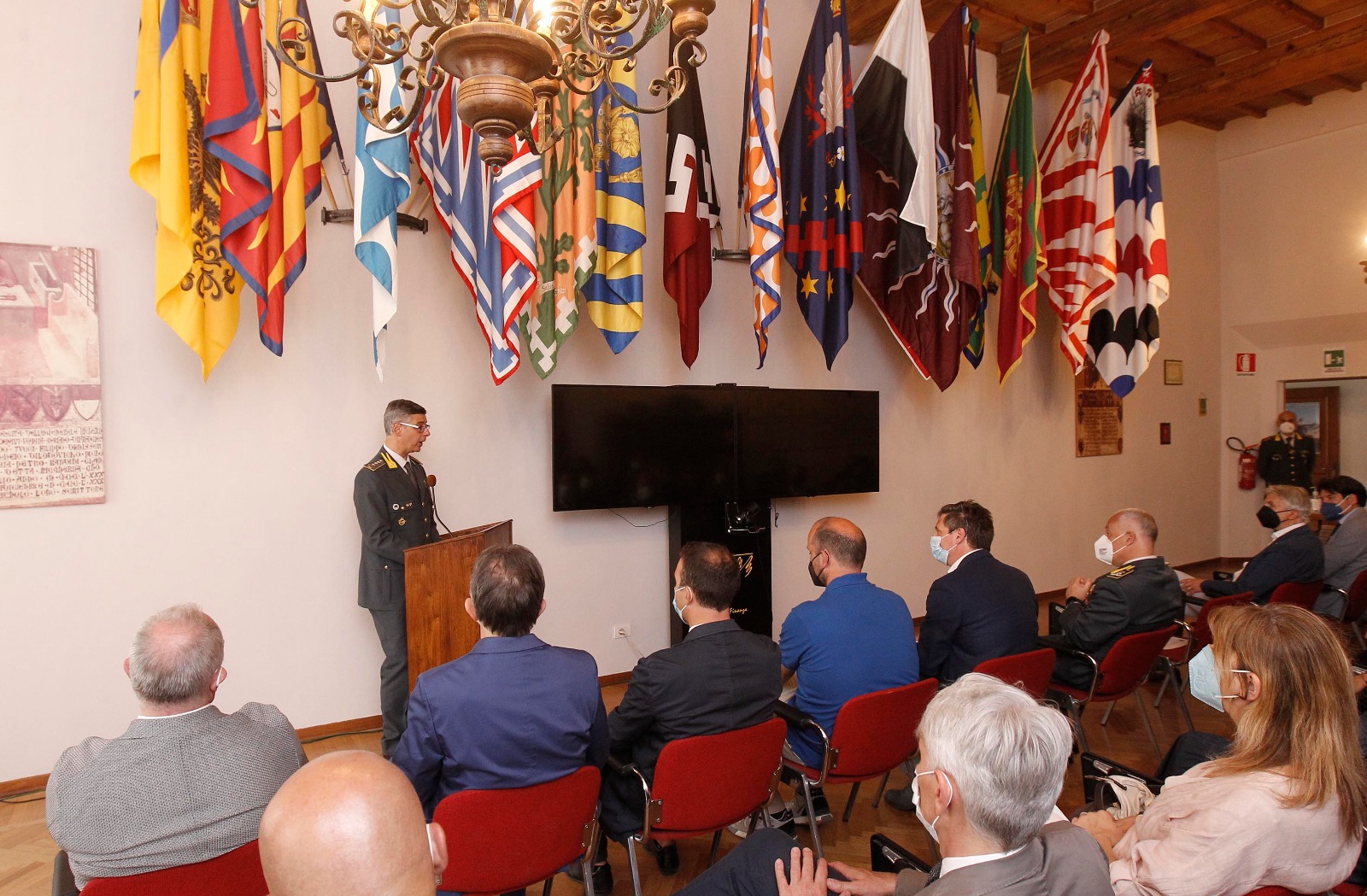 Le Contrade donano le bandiere alla Guardia di Finanza: “L’anima di Siena è nel legame tra le Fiamme Gialle e la città”